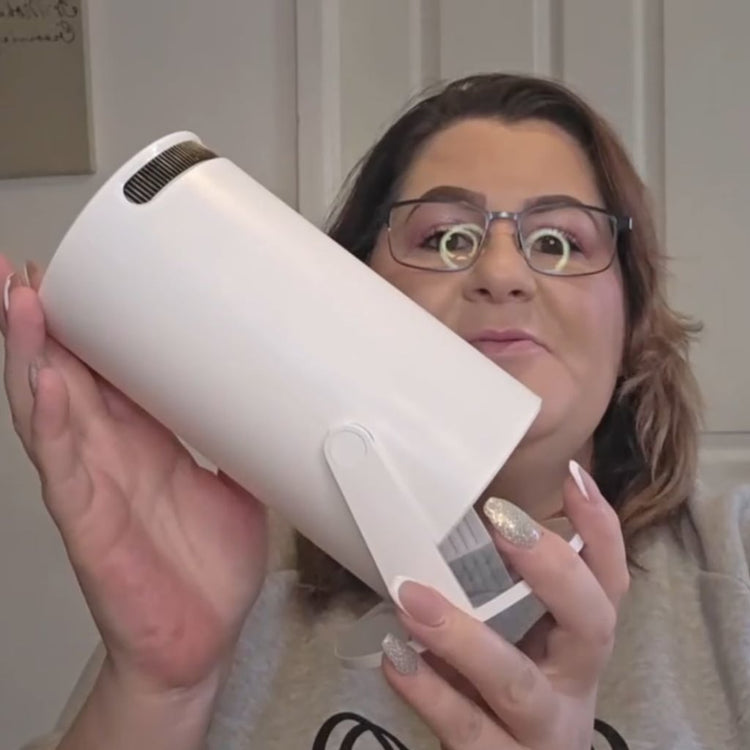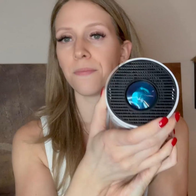 The Lumevo® Portable Projector offers immersive wall projections, adjustable warm light for a snug atmosphere, built-in smart TV apps, whisper-quiet operation, and a compact battery-powered design for true cord-free convenience.